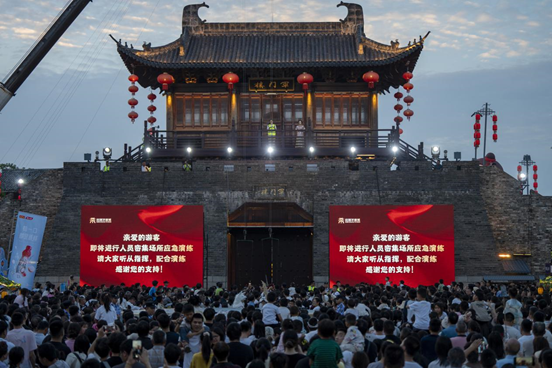 为保障客流高峰期游客的安全,5月1日,赣州宋潮景区管理公司在军门楼广场飞天演艺活动现场开展了防踩踏应急救援演练。集团党委书记、董事长许志辉,集团领导黄冬梅、刘光磊到场督导。