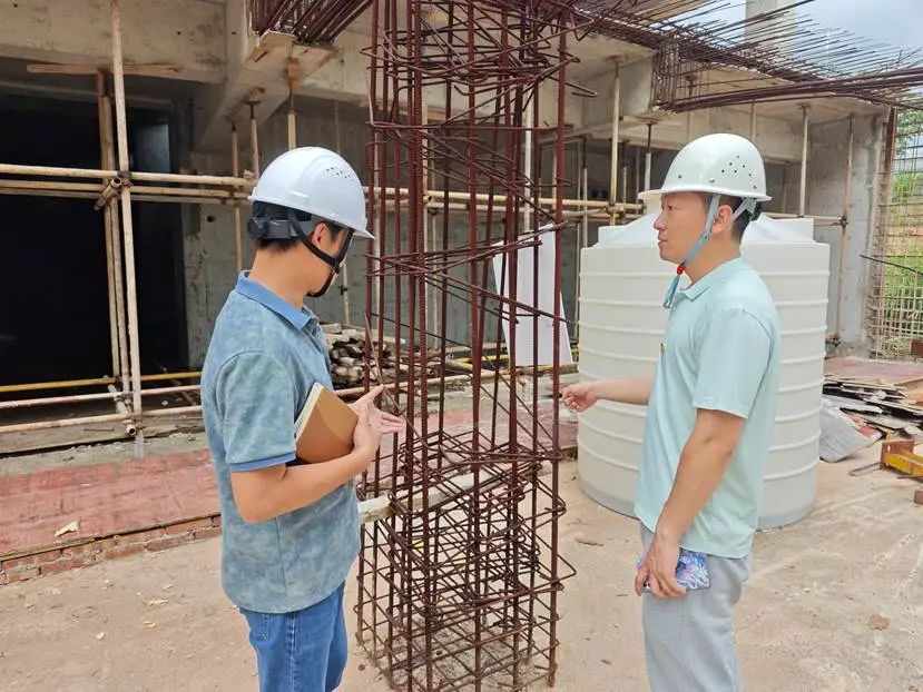在项目施工现场,项目负责人肖桂洲、余光倩详细汇报了施工进度计划,详细介绍工程进展、节点目标及面临挑战。