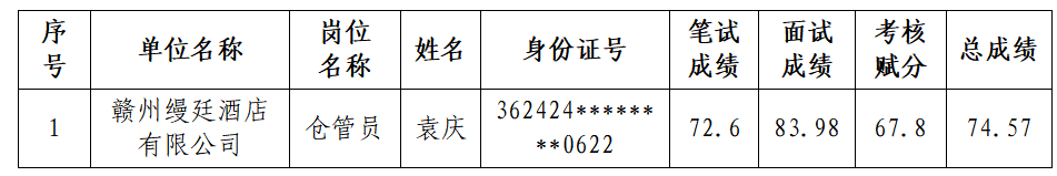 公示期结束后将由第三方招聘服务机构(江西省欧潭人力资源集团有限公司,咨询电话:0797-8371083)通知体检和背景调查等相关事宜。