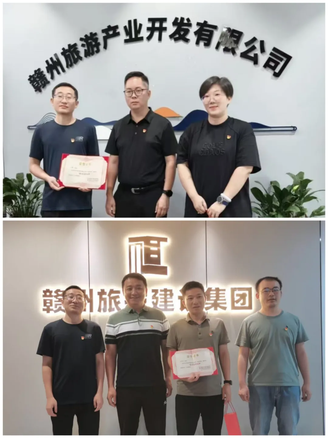 近日,章江街道梅江路社区党支部书记带队专程前往赣州旅游投资集团,将“2024年度优秀邻里先锋”荣誉证书送至旅开公司党支部邓寅、旅建集团党支部胡水长两位同志手中,表彰他们以在职党员身份深耕社区治理、践行“八小时外”的责任担当。