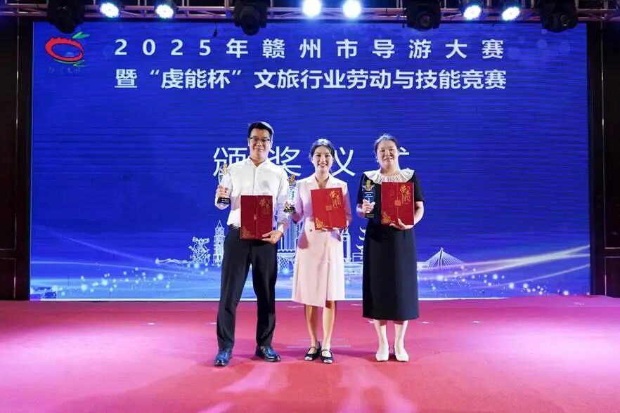 经过基础知识储备测试、主题导游词创作及推介主题讲解、自我展示和对抗讲解等多项环节激烈角逐,旅产集团导服中心员工荣获5项市级荣誉:赖智燕、廖燕、黄志远获评2025年赣州市二十佳导游,其中赖智燕取得全市第二名、廖燕取得全市第五名,分别获赣州市二等奖、三等奖。同时三名选手全部入选为2025年江西省导游大赛赣州参赛选手。