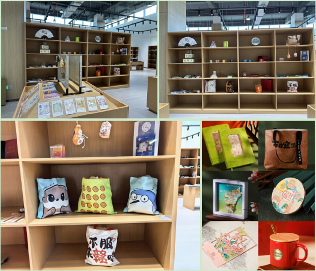 场内文创展区成为选品团关注的焦点之一!展示架上陈列着品类丰富的文创产品,包括融合赣南十八县市区特色的扑克牌、印有赣州地标建筑的系列文创、以及兼具实用性与艺术性的特色日常用品,充分展现了赣旅文创的蓬勃生机与创新活力,产品凭借“高颜值+强文化属性”,吸引卖家纷纷驻足。