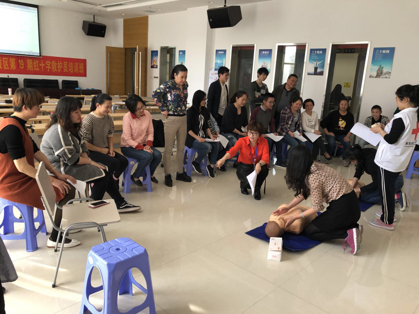 培训分理论培训和实操演练两个部分开展。理论部分,授课老师深入浅出地讲授心肺复苏、创伤救护技术、气道异物梗塞等急救基础知识,让大家深刻认识到掌握救护知识的重要性和必要性。