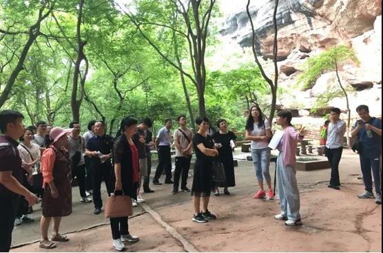 全体党员在景区党员讲解员的引导下,先后游览了忘归岩、龙虎岩、通天岩、翠微岩、观心岩等景区,了解了景区的历史文化、名人故事、佛龛题刻。随后,在500年前王阳明先生讲学地-观心岩景点席地而坐,开展集中学习交流。