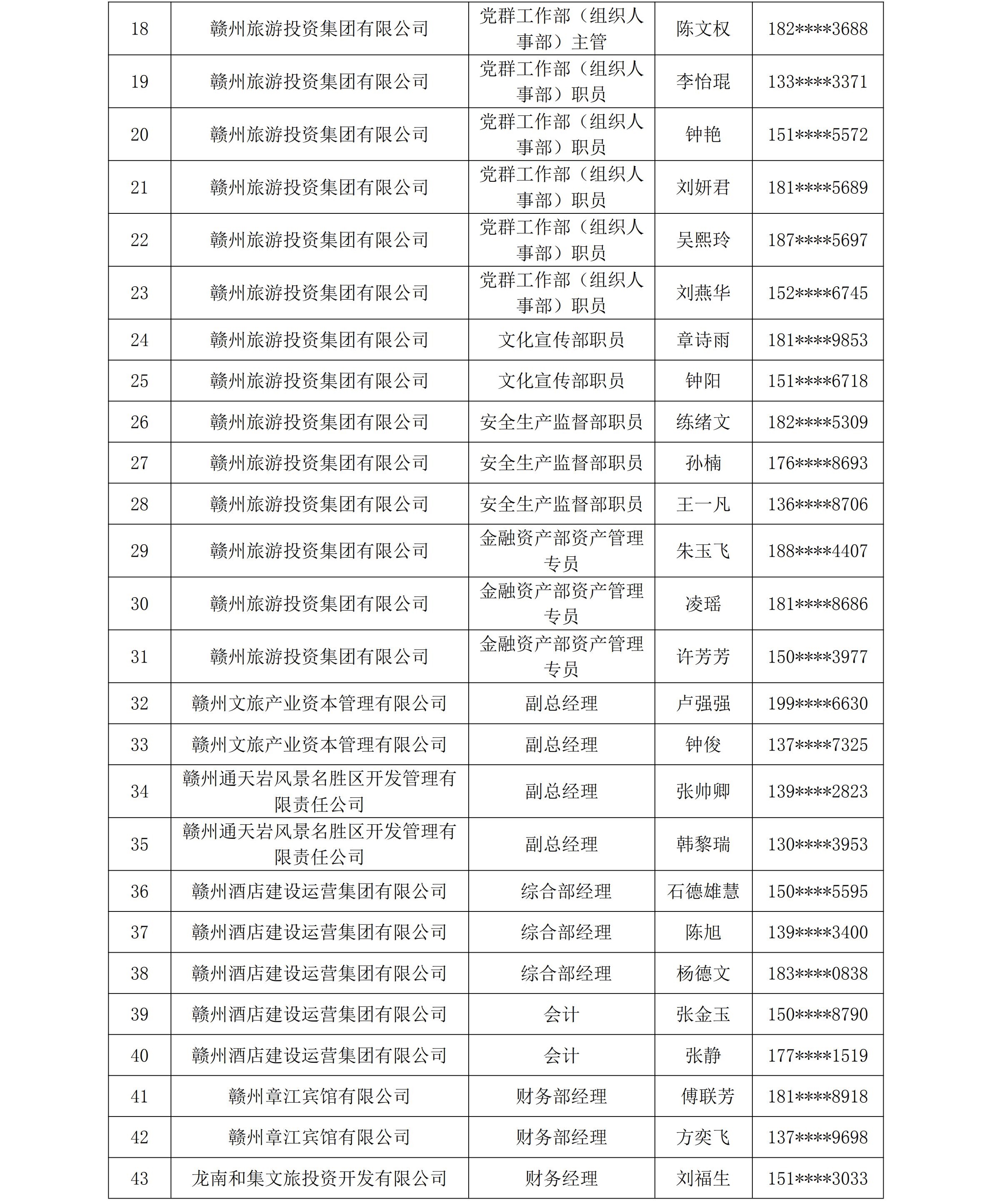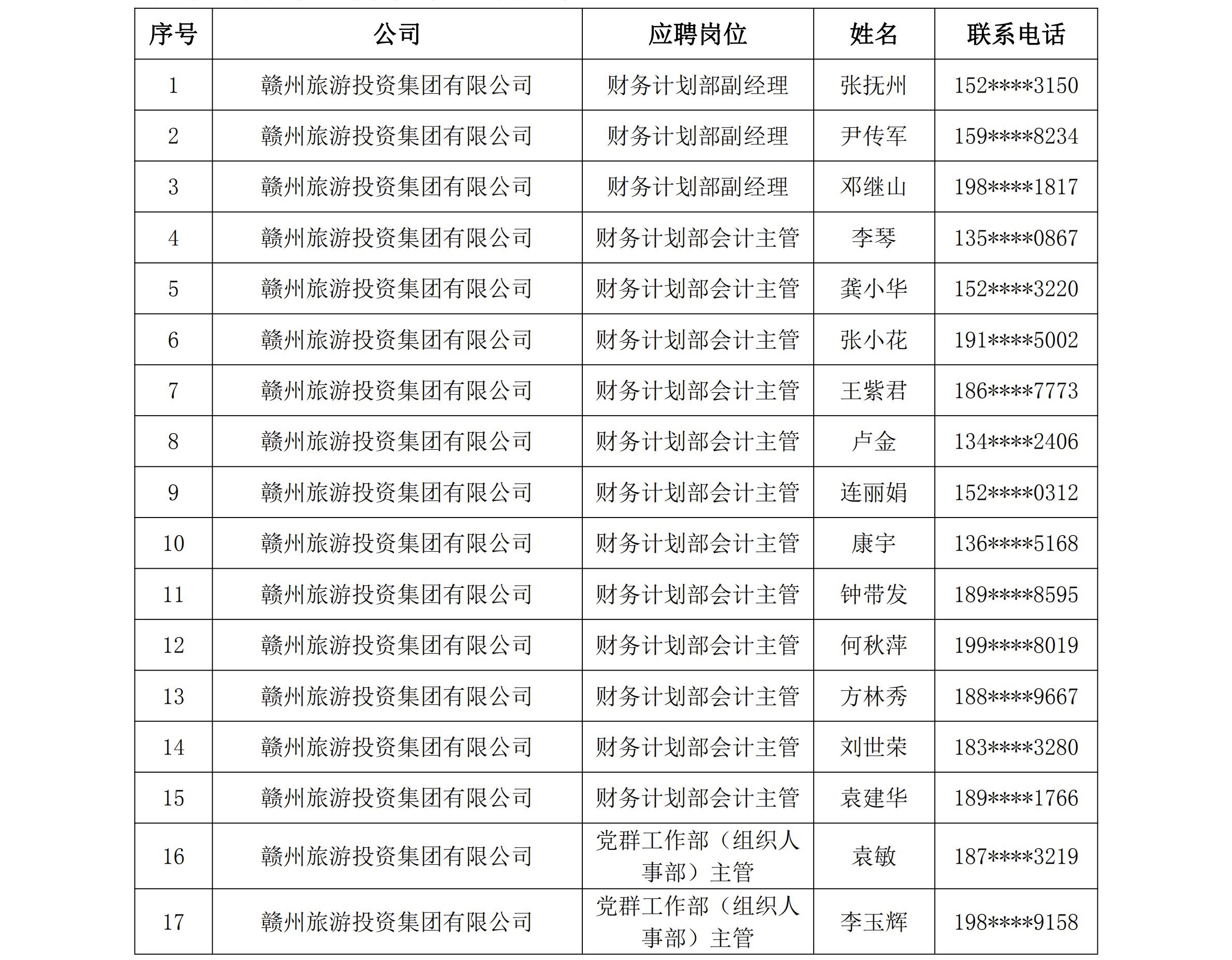 赣州旅游投资集团有限公司招聘入闱面试人员名单公示
