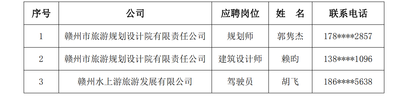 根据《赣州旅游投资集团有限公司招聘公告》要求,经报名、收集简历、资格审查、笔试、面试等程序,现将入闱体检、背景调查人员名单公示如下:
