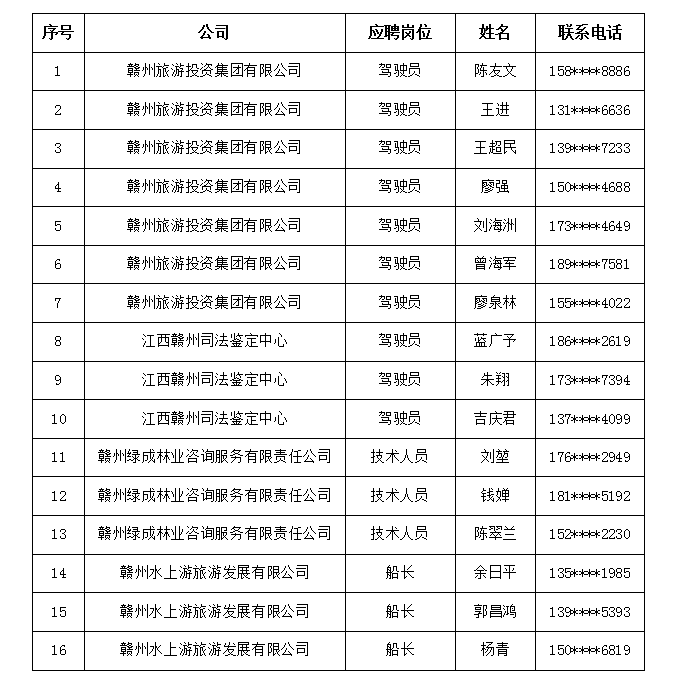 赣州旅游投资集团有限公司招聘入闱面试人员名单公示