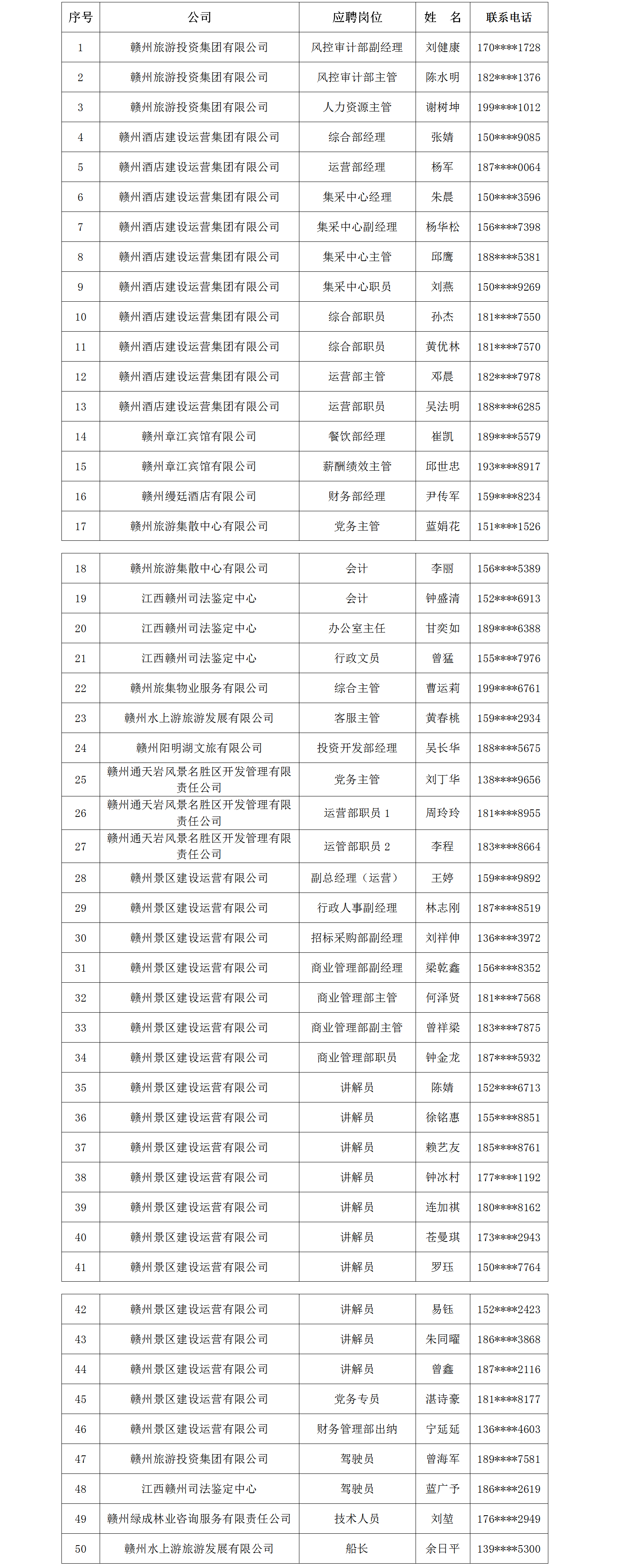 赣州旅游投资集团有限公司公开招聘入闱体检、背景调查人员名单公示