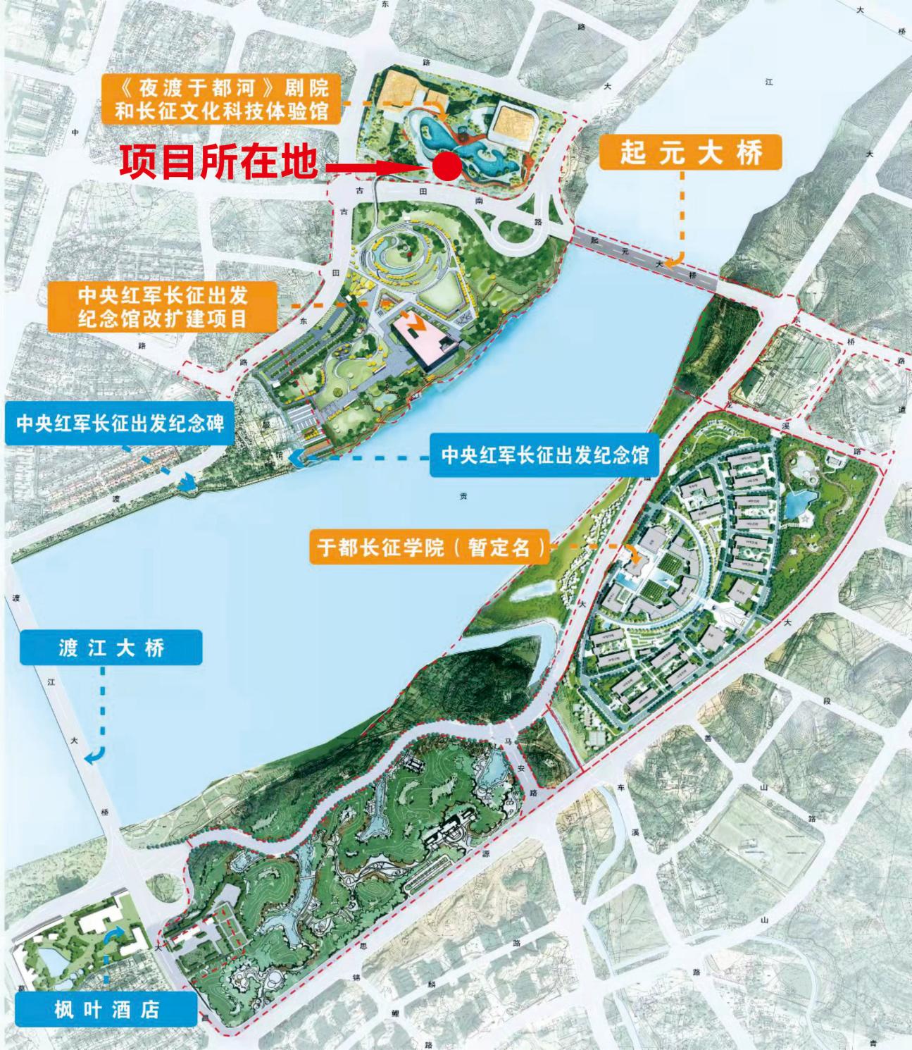 地理位置:赣州市于都县城区内,“长征纪念馆”以北、“于都古城”以南、“长征学院”以西、胜利大桥桥头、濒临于都河。