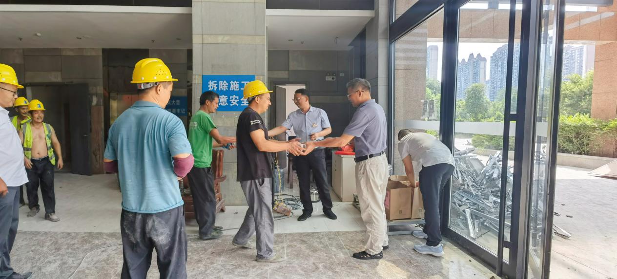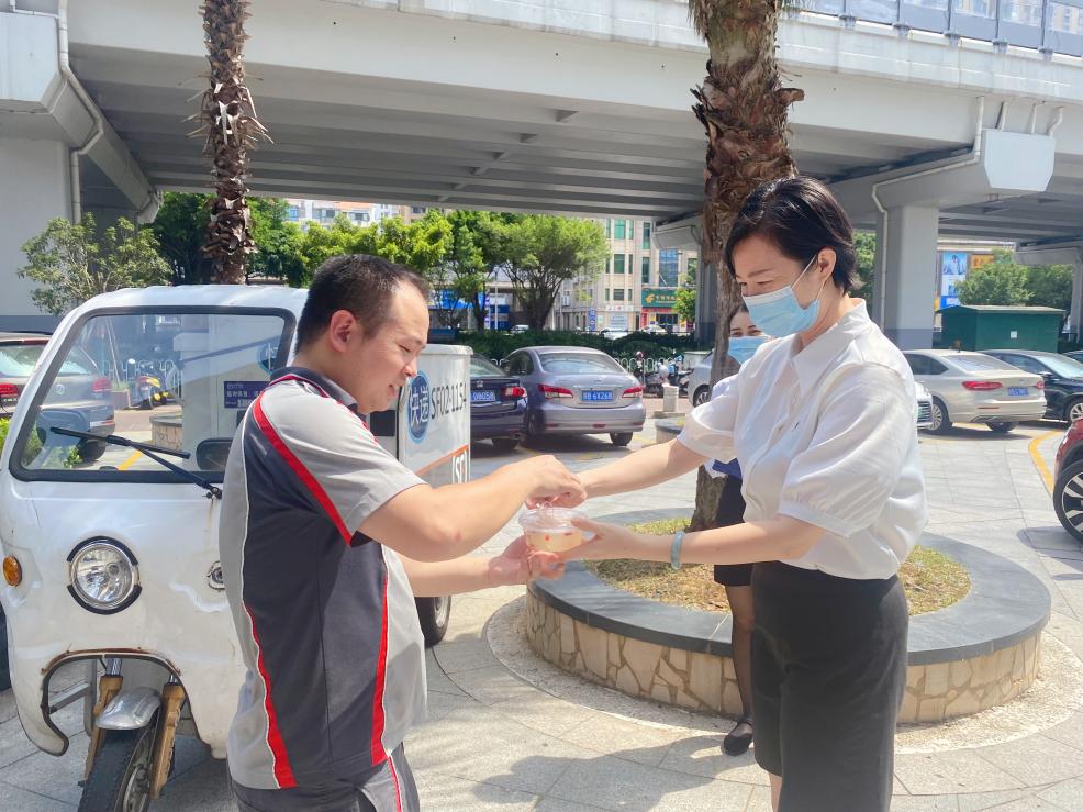 连日来,高温天气持续,为扎实推进“我为群众办实事”实践活动走深走实,切实维护好高温作业下群众的健康安全,赣州旅投集团第三联合党支部近日开展了夏日送清凉主题党日活动,为酒店板块干部职工、章江宾馆二期施工人员、酒店宾馆周边外勤人员送去一份夏日的清凉和问候。