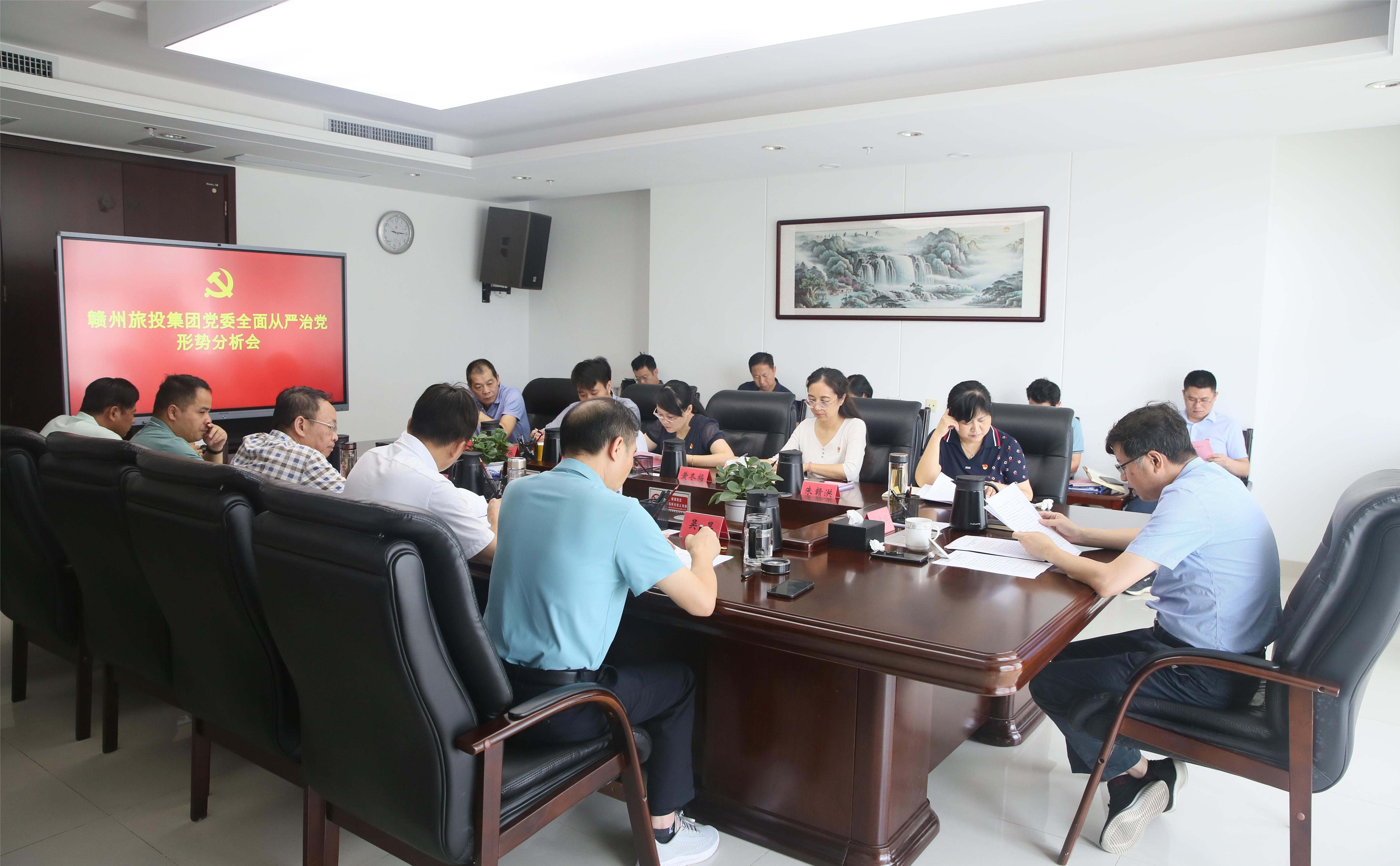7月27日,赣州旅投集团党委召开全面从严治党形势分析会。集团党委书记、董事长许志辉主持会议并讲话,集团党委副书记、总经理吴昊等党委班子成员参加会议,集团非党员领导班子成员、各部门主要负责人列席会议。