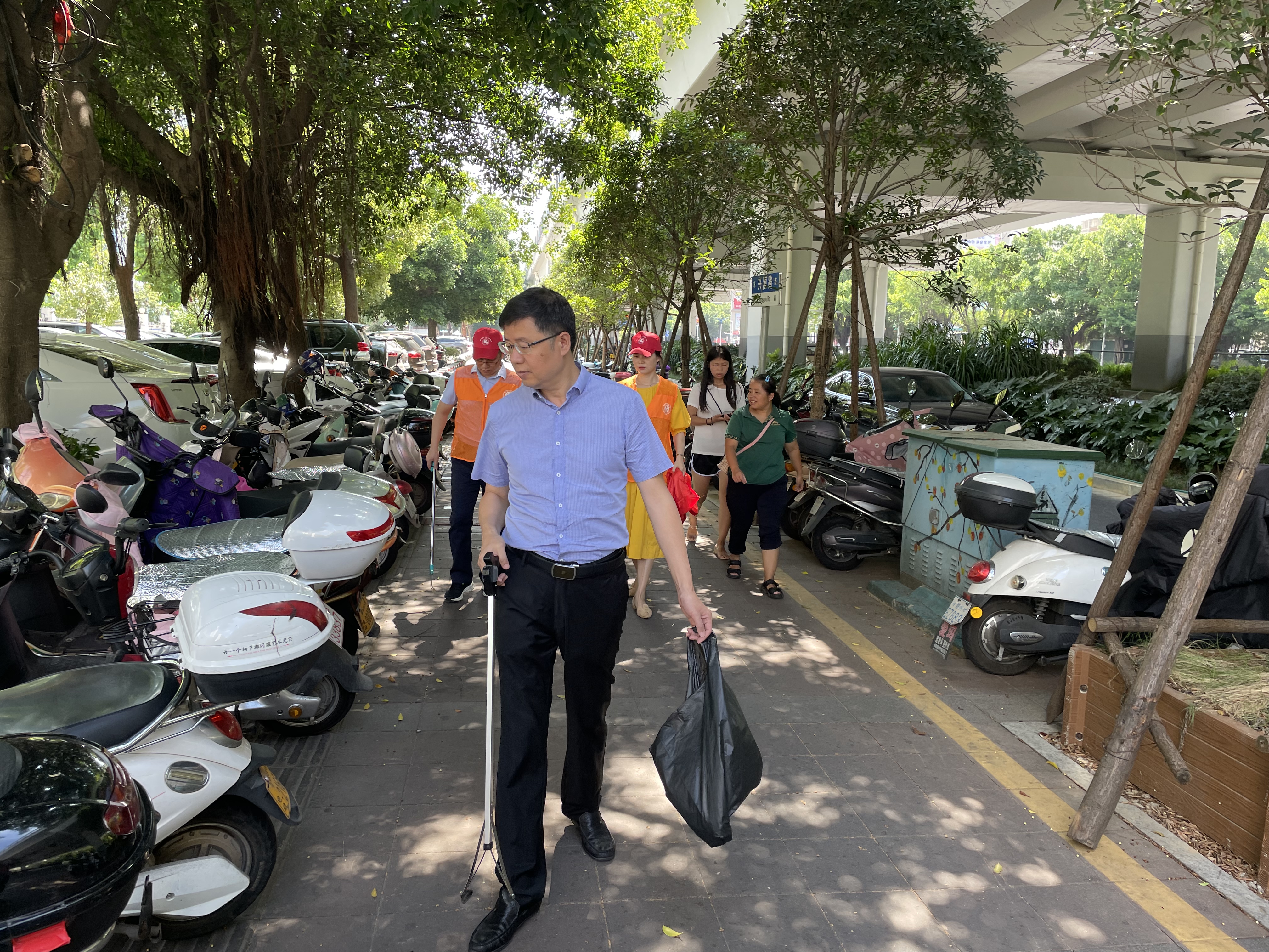 在兴国路,许志辉实地查看了主次干道及背街小巷等地环境卫生情况,听取了有关情况汇报,带头开展环境卫生整治、规范车辆停放等志愿服务活动,对发现的问题进行现场交办,要求尽快整改落实到位。